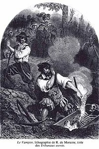 Le Vampire, lithograph by R. de Moraine Les Tribunaux secrets (1864)